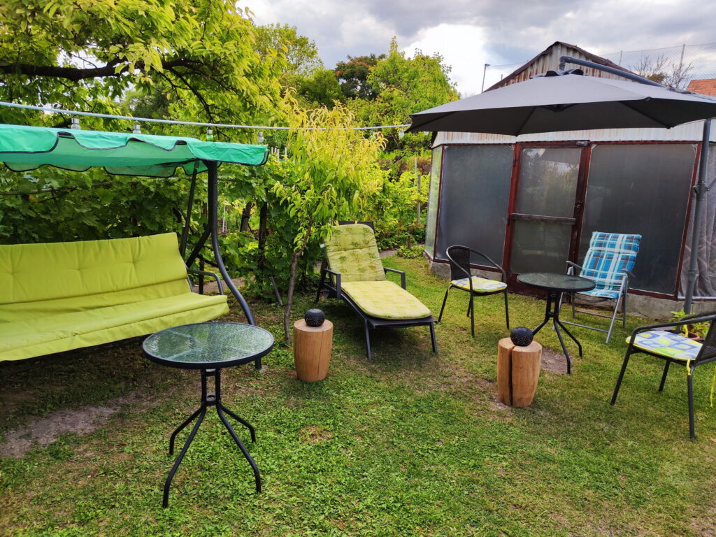 A kertben élő sokféle madár varázslatos környezetet teremt a pihenéshez.